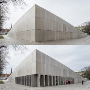 موزهی ملی شهر شچچین[۱]، اثر Robert Konieczny + KWK Promes به گفتهی دیوید چیپرفیلد[۲] بنایی «خوشبین، شاعرانه و خیالی» است. او در ادامه میگوید «این پروژه شهر و زندگی شهری را غنی میکند. طرح بنای موزه با سه [دورهی مؤثر] تاریخی رویارو است، جهان پیش از جنگ جهانی دوم، تخریبهای جنگ، و بازسازی پس از جنگ که شکاف بزرگی را در مرکز شهر بهجای گذاشتند … این بنا علاوه بر موزه بخشی از موضع شده است. فرورفتن در زمین، یعنی کاوش در حافظه و تاریخچهی شهر، درحالیکه سقف بنا چهرهی عمومی آن است و میتوان به روشهای مختلفی تفسیر و استفاده کرد.»