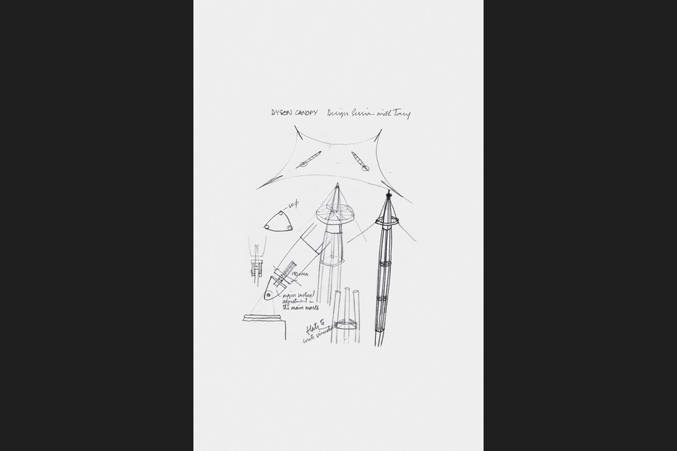 این پردیس در طول ۲۰ سال با همکاری شرکت طراحی و ساخت سر جیمز دایسون توسعه ساختهشده است. اسکیسهای اولیه آن در دفترچه اسکیس سال ۱۹۹۴ من، ایده سقف مواجی که بر روی درختان کناره شهر تاریخی ویلتشیر در مالمزبوری شناوراست، را به همراه جزییات غرفههای ورودی با طراحی مهندس تونی هانت نشان میدهد.