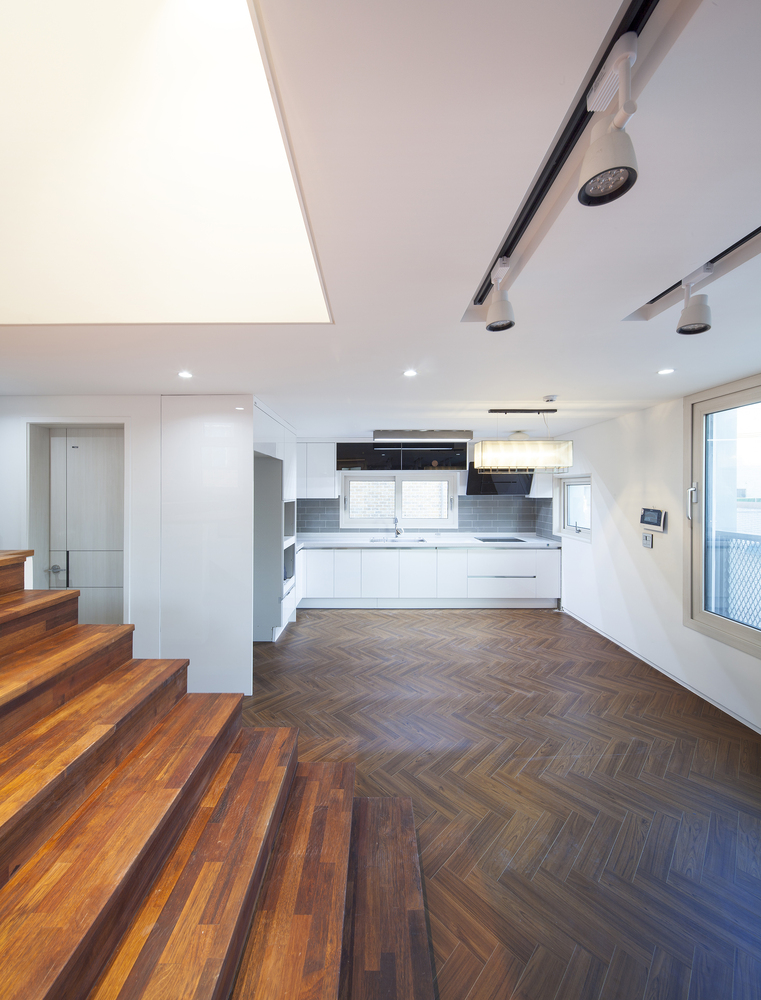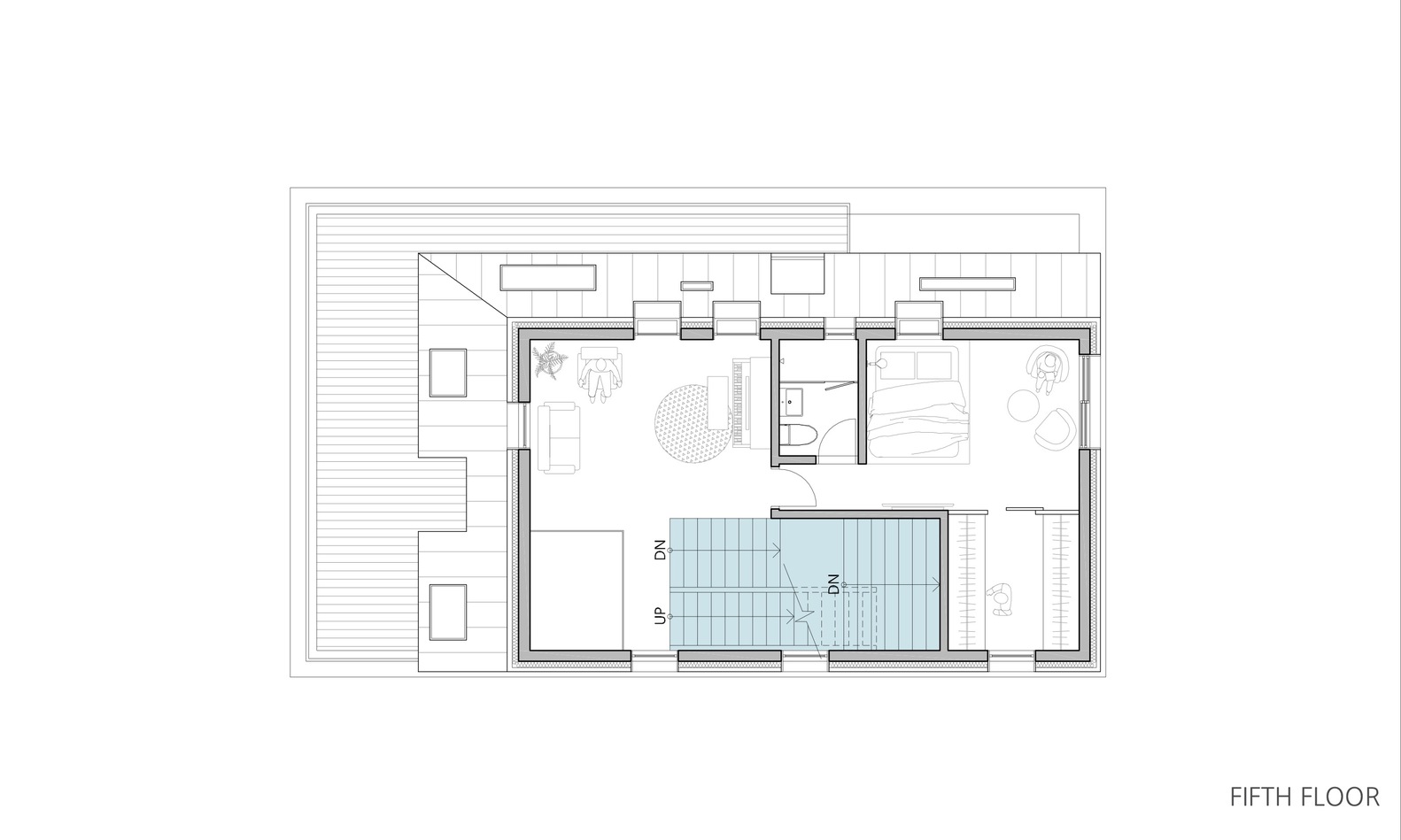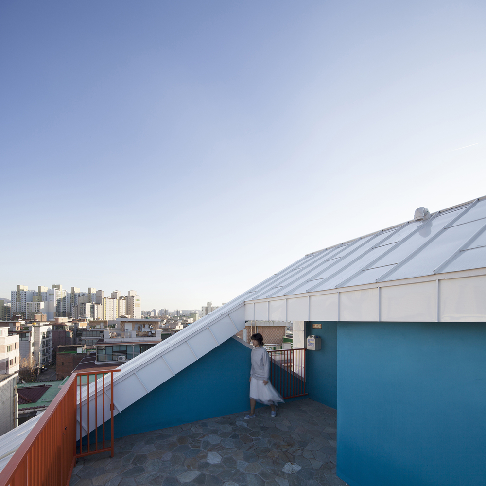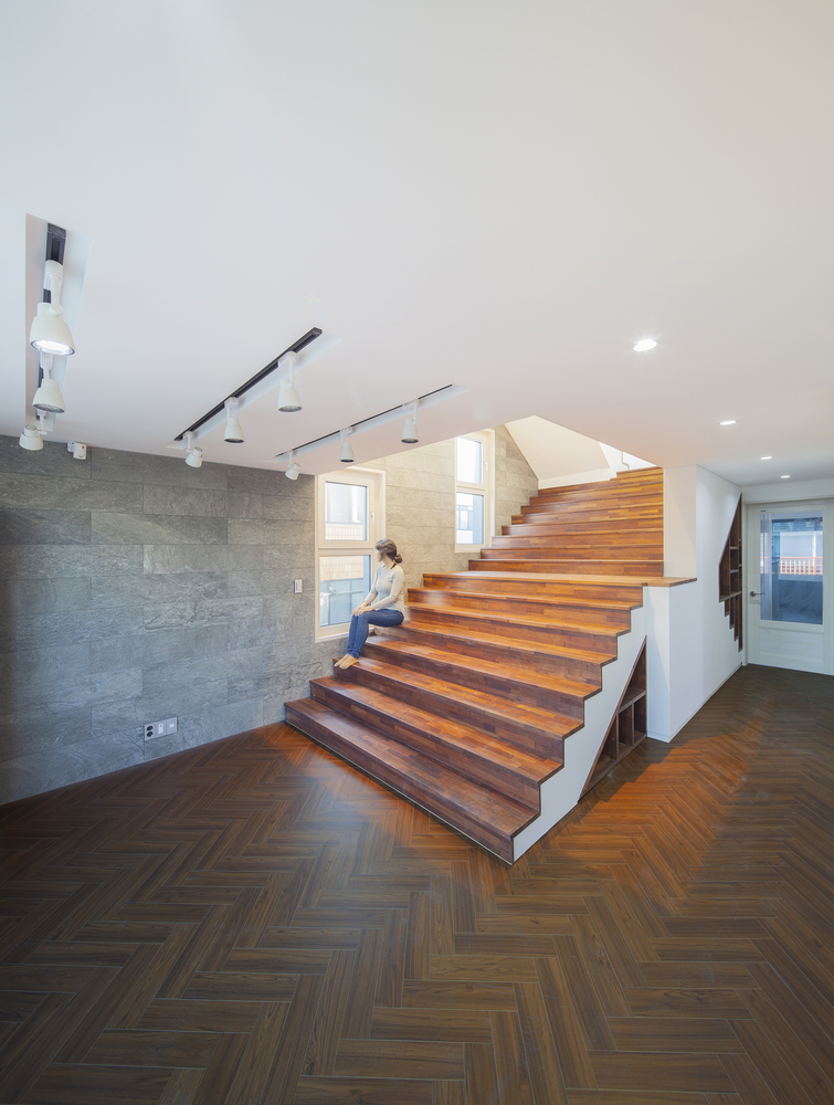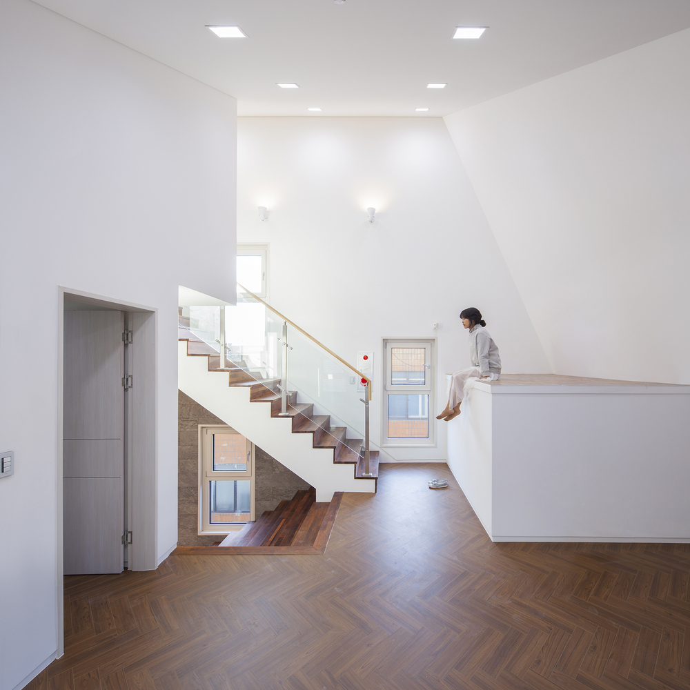 سفارشدهنده این پروژه بسیار تمایل داشت که خانه دوطبقهاش مانند یک پنت هاوس متفاوت بالای خانههای استیجاری قرار بگیرد و متناسب با فعالیتهای گوناگون فضای داخلی و خارجی داشته باشد. معماران استفاده از رنگها، بافتها و مصالح متفاوت در نمای خارجی را پیشنهاد کردند تا به این وسیله فضای استیجاری و تملیکی در نمای خیابان از هم متمایز باشند. علاوه بر این، ترکیب اشکال متنوع- مانند طراحی جعبه آجری کلاسیک و مقرونبهصرفه برای خانههای استیجاری و یک ذوزنقه سفید مدرن برای خانه مجلل- باعث میشود ویژگیهای مدنظر آنها به بهترین شکل نمایان شود.