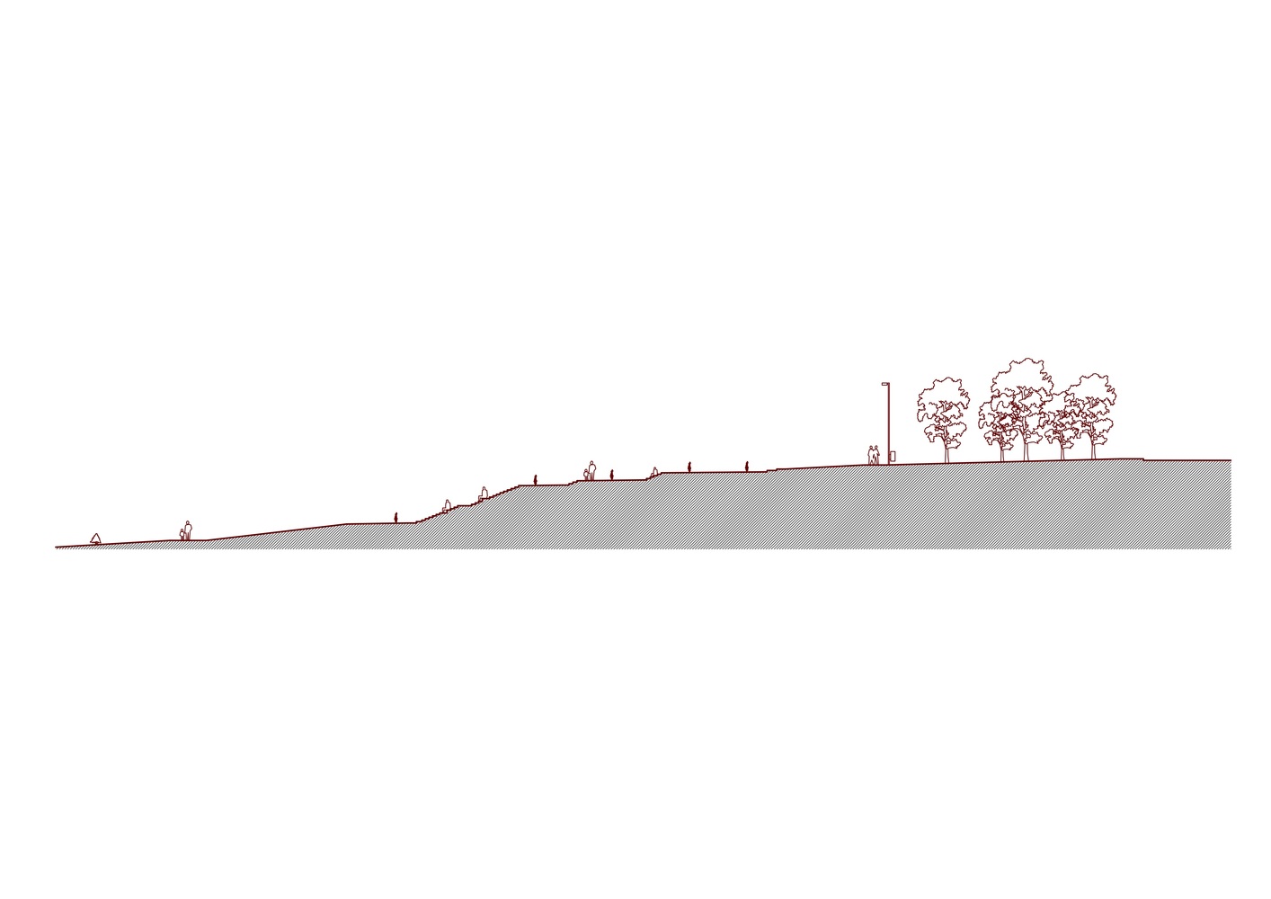 ازآنجاییکه قبلاً تعدادی مکان مشابه در جوربکس – نزدیک به پارکهای طبیعی وحشی- وجود داشت، تصمیم گرفته شد که فرمها، مصالح و عناصری مدرن را انتخاب کنند. البته دقت و حساسیت خاصی در موقعیت فعلی سایت لازم بود. بتن بهترین راهحل برای رسیدن به هدف بود. بتن یکی از نشانههای فرهنگ مدرن شهری محسوب میشود درحالیکه میتوان از آن به طرق مختلفی استفاده کرد. از بتن سفیدرنگ برای پلها، نیمکتها و از بتن سیاهرنگ برای پر کردن فضای خالی بین آنها استفاده شد. پله نیمکت (پلههایی که بهعنوان نشیمنگاه نیز میتوانند استفاده شوند) المانهایی چندمنظوره هستند و میتوانند توسط مردم در سنین مختلف مورداستفاده قرار گیرند. تضاد بین عناصر سیاهوسفید، بین عناصر شهری و طبیعی، خطوط صاف و فرمهای ارگانیک مهمترین خط مشی و رویکرد هنری بود که در این پروژه منظر به کار گرفته شد.