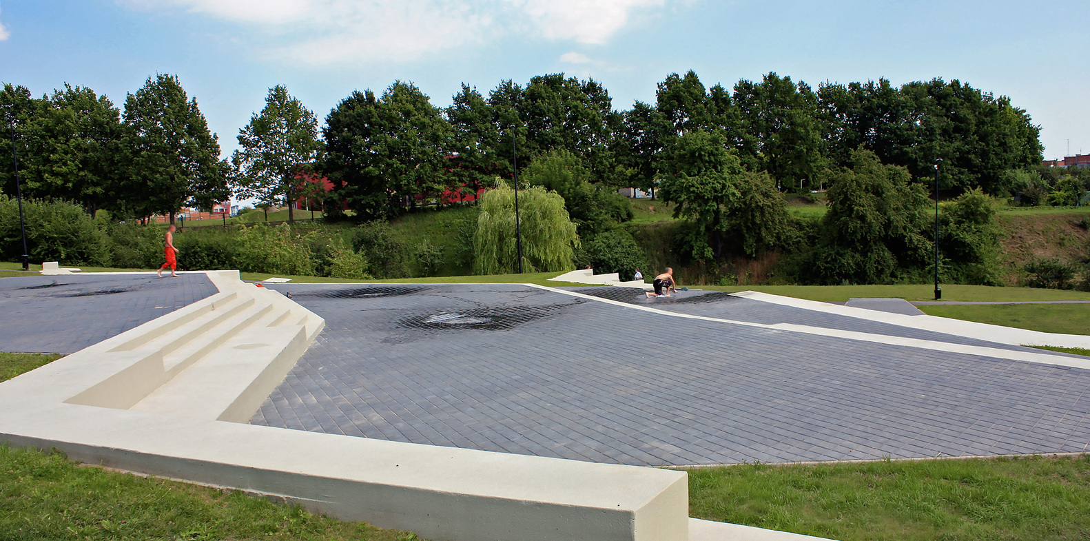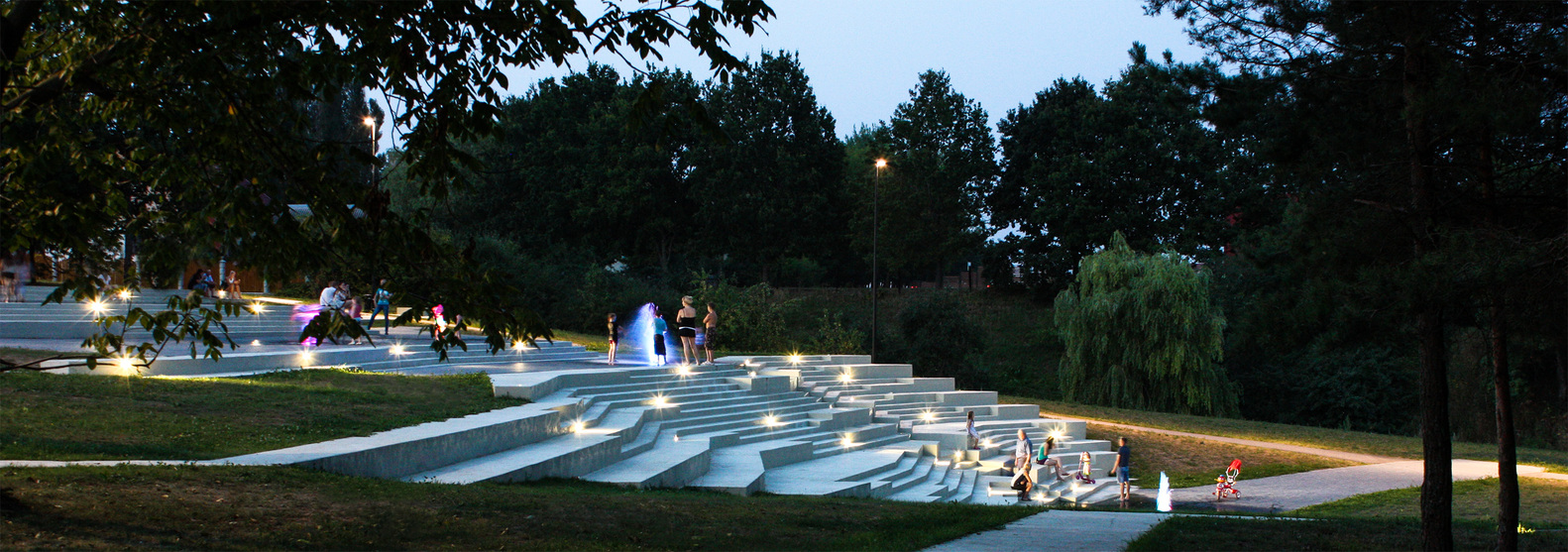سه فضای متفاوت با جو حاکم و نقاط دید متنوع وجود دارد، که مردم روزانه هنگام عبور از پارک با آنها مواجه میشوند. هدف شکل دادن به آنها و تأکید بر مقیاس و اندازه، عملکرد و جو هرکدام بود. بزرگترین فضائی که طراحی و ایجاد شد، متشکل از آبنماها و جوی باریکی بود که توسط پلههای بتنی به پایین جاری میشد. همچنین ایجاد چشماندازی زیبا به شهر و مکان ایده الی برای گردهمایی، رخدادهای شهری و جشنها از دیگر مواردی است که این پروژه به آنها تحقق بخشید. همچنین فضاهای کوچک برای کسانی که مایل هستند تا از جمع جدا باشند و فضای سومی شامل اتاق مربع شکل که ایدئال برای کتابخوانی و وقت گذراندن با بچهها است، نیز ایجادشدهاند.