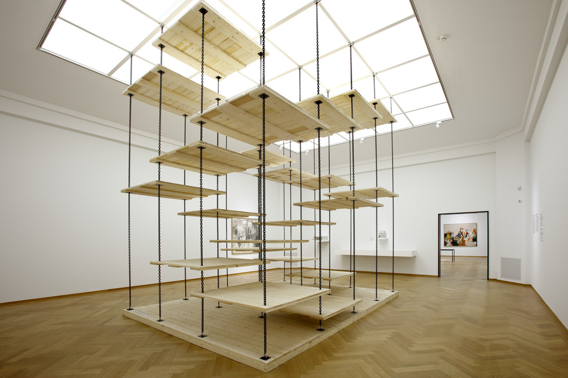 نیوِنهویس در نهایت حتی تعدادی محیط فراگیر نیز ساخت و در موزههای مختلفی به نمایش گذاشت. استمپس میگوید: در این نمایشگاهها، «میتوانستید تا حدی تجربه کنید که اهل بابل نو بودن چه حسی دارد.» یک نمونه از این کارها که در نمایشگاه سال گذشتهی موزهی شهرداری دوباره به نمایش گذاشته شد، «پلههای بازیگوش» است؛ اثری که در سال ۱۹۶۸ خلق شد و در آن سطوحی چوبی توسط زنجیرهای نازک سیاهرنگی از سقف آویزان شدهاند. هریک از این سطوح در ارتفاع متفاوتی قرار دارند تا نوعی از صعود سهبعدی را القا کنند.