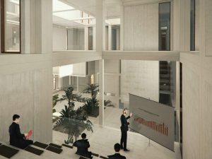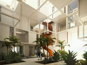 معماری در مسیر باد، معماری لته های پنجره هاست. مجراهایی که کیفیت نسیم اقیانوسی را در کنار منظر وسیع و افقی بستر طرح، به تمام فضای درونی تعمیم می دهند، تجسم فرصت های بی نهایتی هستند که توسعه آینده سواحل مکران به روی سرمایه گذاران و حرفه مندان گشوده است. حجم متراکم، ظرفیت پذیرش برنامه های متعدد و نامتعین را دارد و این تلاقی بین تمرکز در مقیاس کلان و تکثر در مقیاس خرد، استعاره ای است از موضعی که می تواند چشم اندازه آینده توسعه در چابهار باشد.