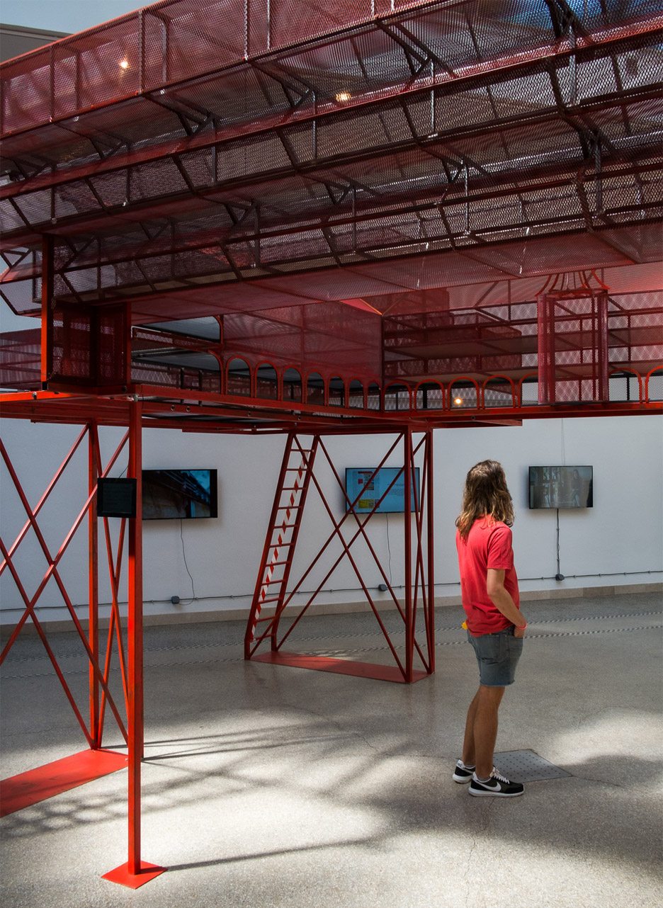 نمایشگرهای مختلف استراتژیهای مخالف با تعمیر این بنا را که برای دههها ویران و رهاشده باقیمانده به نمایش میگزارد.
