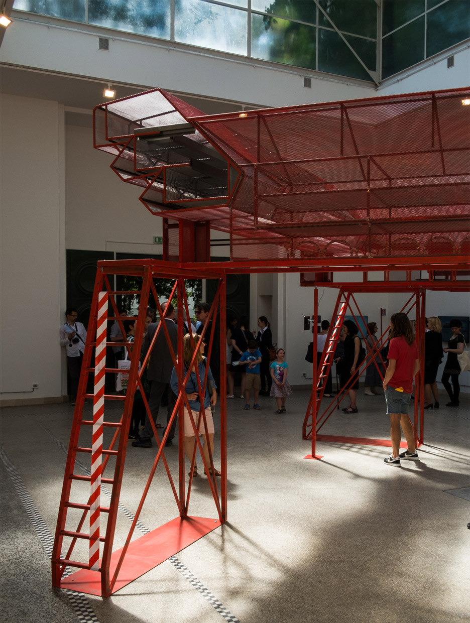 امسال غرفهی چک و اسلواکی برخلاف سال ۱۹۸۹ که تاریخ جدایی دو کشور پس از سقوط اتحاد جماهیر شوروی بود، ادغامشده. بررسی فرهنگ، زبان و تاریخ این دو کشور جوان بهخوبی اشتراکات و مبدأ فرهنگی دو کشور را آشکار میکند. حالا سازهای عجیب و قرمز رنگ که از گالری ملی اسلواکی به ژیاردانی آمده، افزون بر مطرح کردن این سؤال که آیا میراث معماری عصر شوروی در این کشورها باید حفظ شود یا نابود؟ محوریت غرفه چک و اسلواکی را نیز در دوسالانه ونیز تشکیل میدهد.