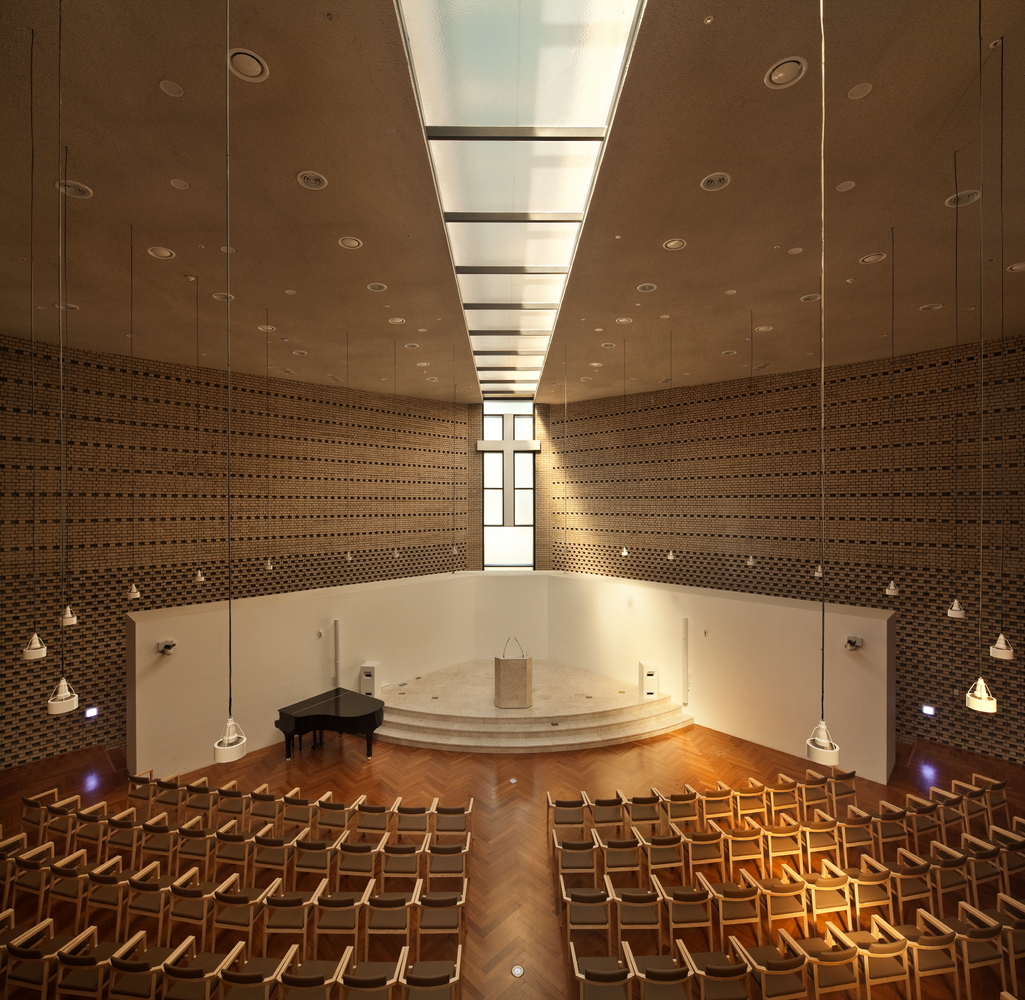 یک صلیب، یک شبح و یک نور، کانسپت اصلی این بنا را تشکیل میدهند. فضای سالن اصلی با طراحی داخلی اش، فضاهای جدید را خلق میکند.