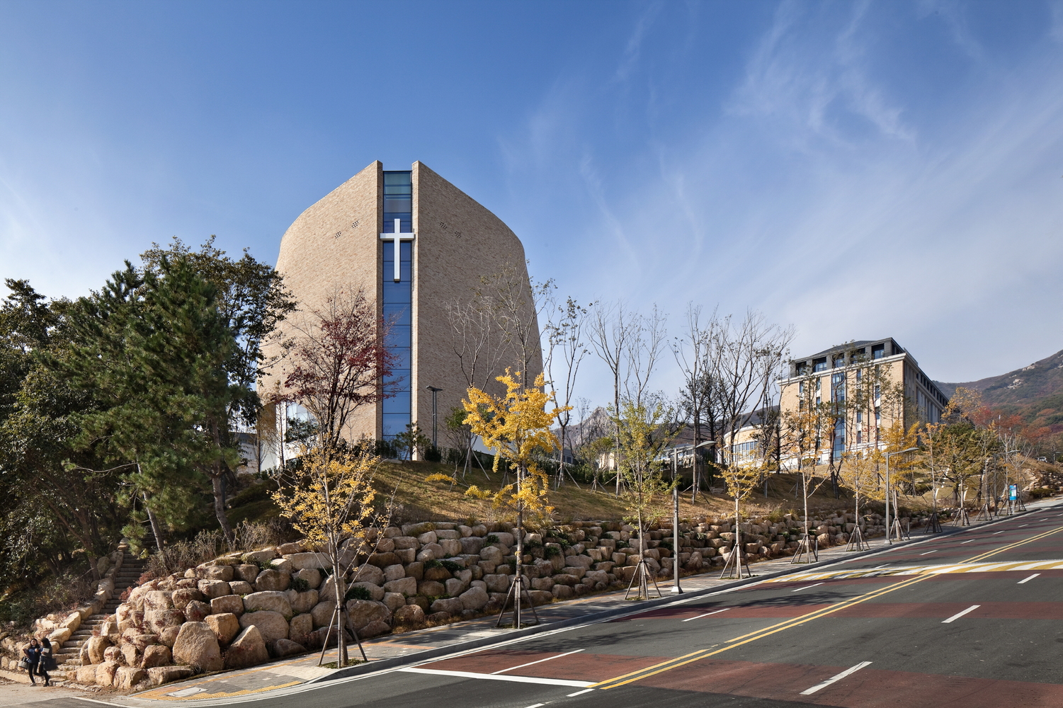با توجه به این فرآیند، طرح کلیسای دانشکده مطالعات خارجه بوسان در کره جنوبی یک شبح را به این پردیس دانشگاهی عرضه کرده که بیانگر ایدئولوژی این دانشگاه است.