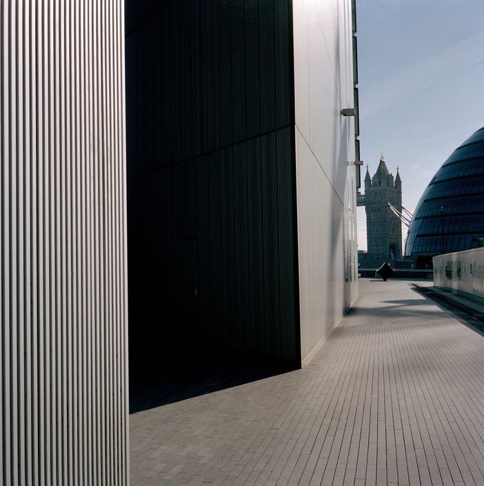 لندن. توسعه دفتر طراحی شده توسط فاستر و همکاران، در نزدیکی تالار شهر. به سمت پل برج و تالار شهر. 2005.