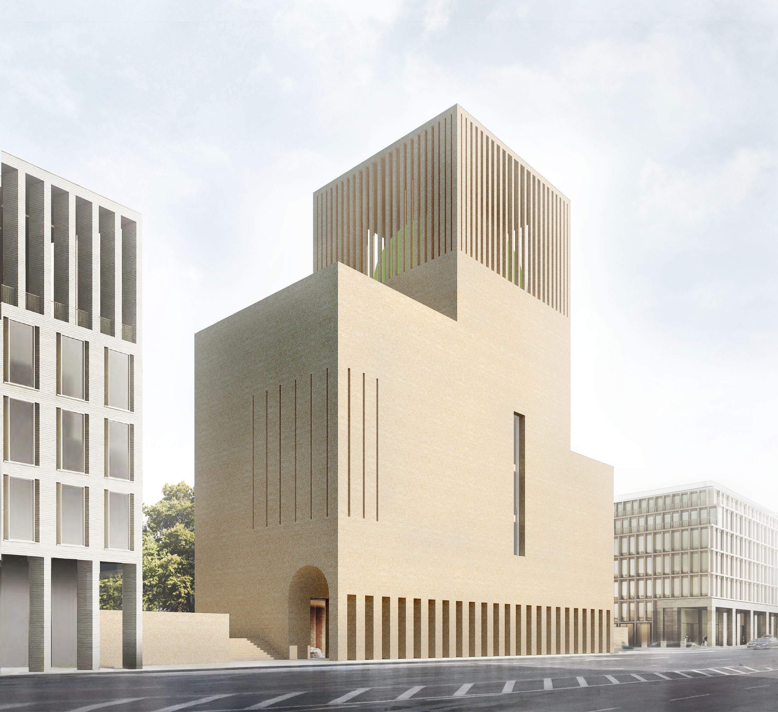 حجم آجری و بسیار مینیمال است. اختلاف ارتفاع ساختمانها بر اساس قدمت هر دین در نظر گرفته شده است. کنیسه کمترین ارتفاع، و در ادامه کلیسا، و مسجد به ترتیب مرتفعتر میشوند. و در آخر سقف فضای میانی (سالن گردهمایی) بلندترین قسمت ساختمان را به وجود میآورد. ترکیب ساده احجام در فضای خارجی، جنس متریال، و بازی با نور در درون فضا، احساس معنویت بنا را دو چندان کرده است.