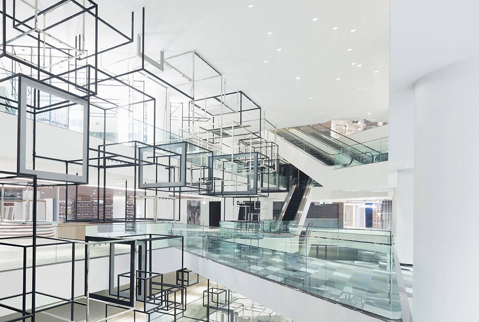 طراح صنعتی معروف ژاپنی این بار پا در کفش معماری کرده و بزرگترین پروژهی خود را اخیرا به پایان رسانده است. شرکت نندو که کارهایش را بارها در یانون دیزاین دیدهایم (مثلا +)، فروشگاهی چهل هزار متر مربعی را در بانکوک بازطراحی کرده است. سالنهای فروشگاهی که شاید مهمترین شاخصهشان مبلمان درونشان باشد، مورد مناسبی هستند برای یک طراح مبلمان که استعدادهای معماری خود را نیز بسنجد!. این مجموعهی فروشگاهی با داشتن چندین سالن مجزا که هر یک مختص یک نوع کالا است، با کانسپتهای متفاوتی طراحی شدهاند. نندو سعی کرده که معماری را توسط جدارهها به مبلمان متصل کند و به نظر میرسد که در این موضوع موفق نیز بوده است. خلوص، هندسهی منتظم و البته شفافیت فضاها در غالب این اتاقهای فروشگاهی دیده میشود. طراحان سعی کردهاند که این ویژگیها را در جدارهی بیرونی فروشگاه نیز به نمایش بگذارند که مکعبهای معلق در جدارهها، این نقش را به خوبی ایفا کردهاند.