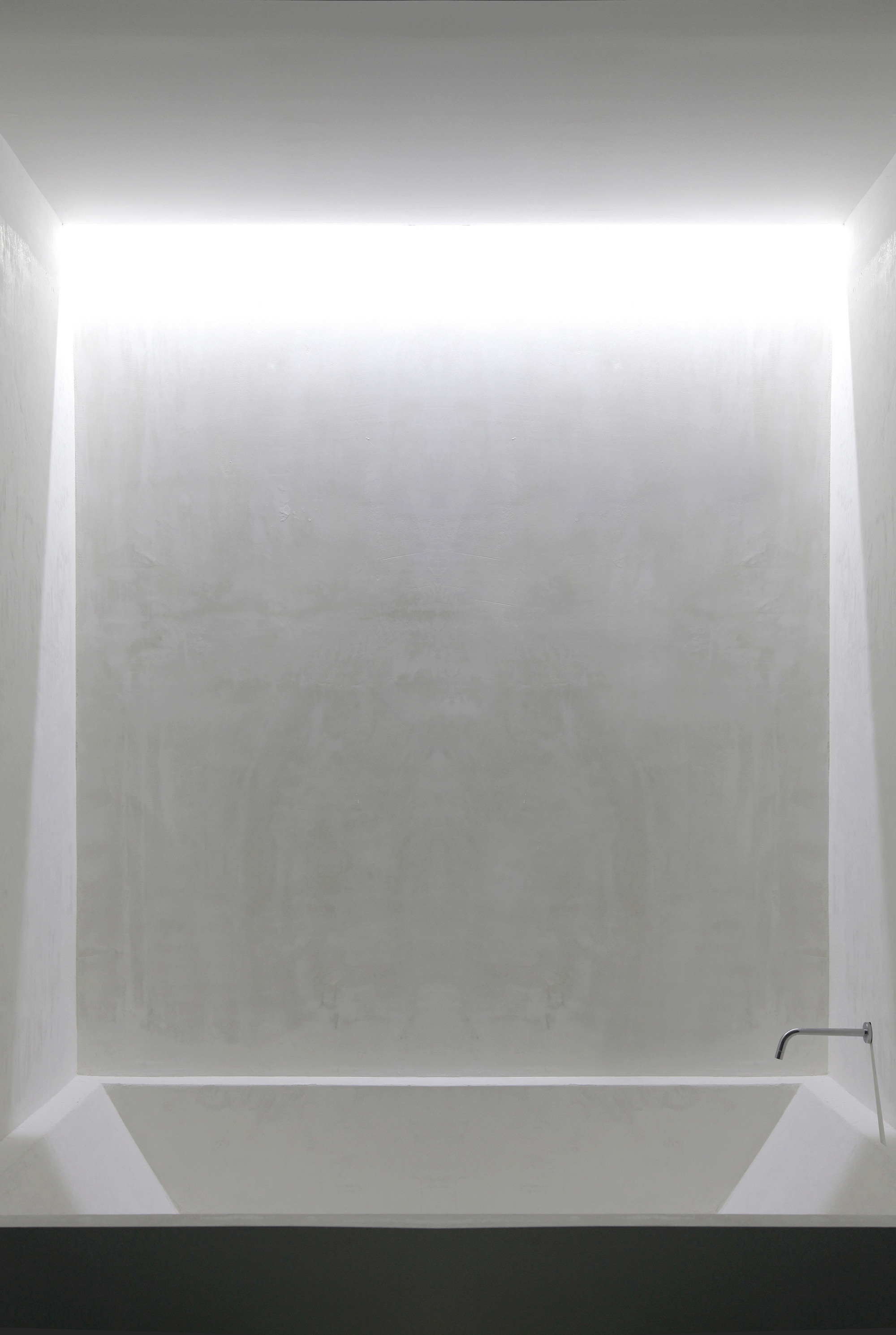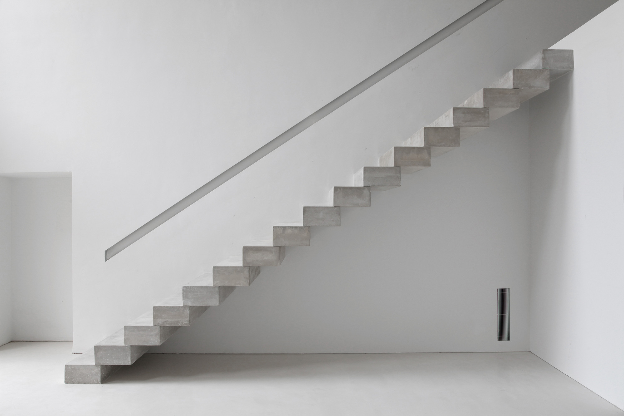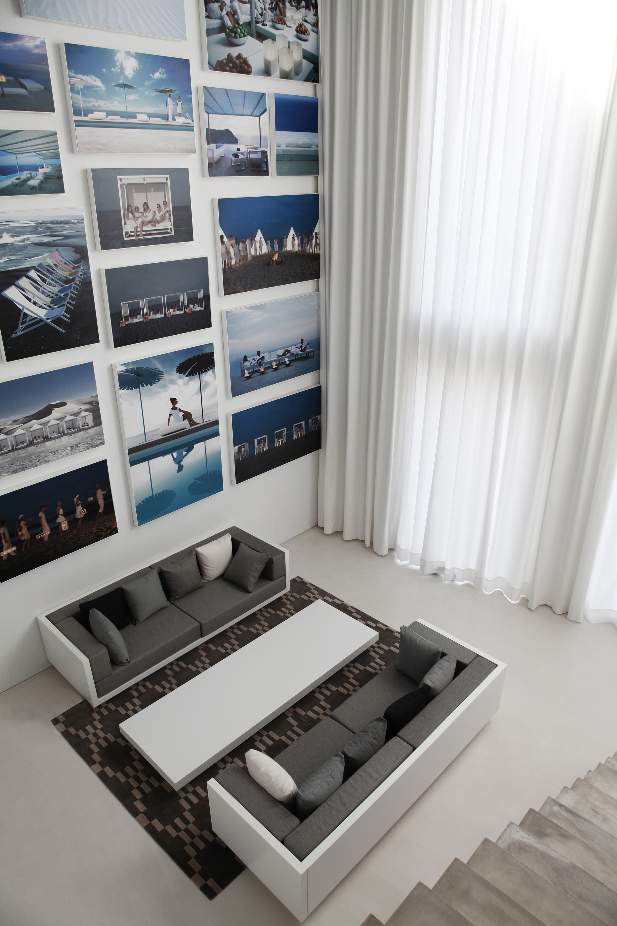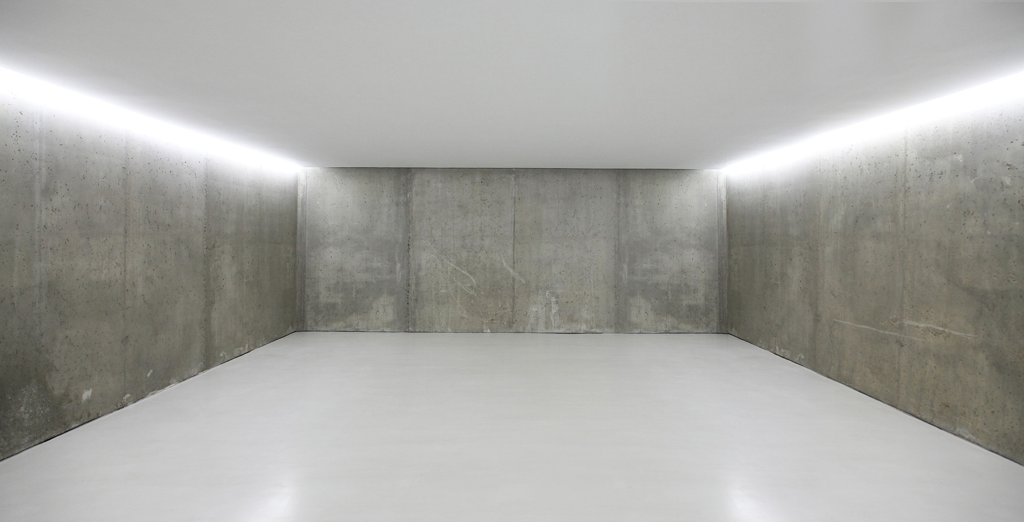 مرکزی این پروژه یک فضای باز و وسیع در طبقهی همکف و راهپلهای تندیسوارِ بتنی است که بازدیدکنندگان را به طبقات بالا هدایت میکند. تمام مصالح بهکاررفته در این پروژه با بتن سفیدند و بدون هرگونه پرداختی، هویتی لخت و صادقانه به بنا میبخشد. زیرزمین آن فضای باز و گستردهای است که خانه و استخر را به هم مرتبط میکند. استخر از بتن سفید ساختهشده و مانند یک سطح آبیِ بزرگ و شناور به نظر میرسد.