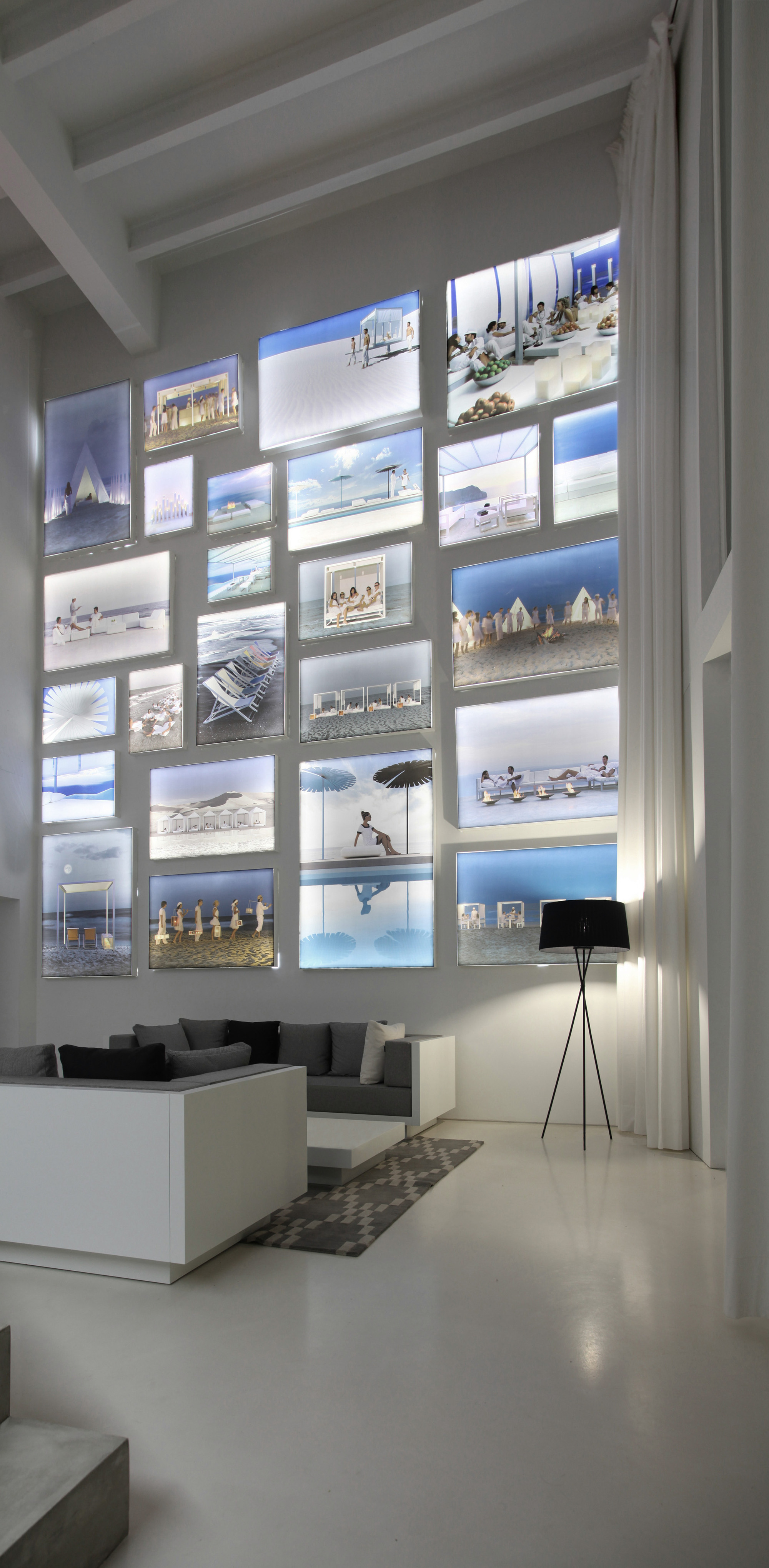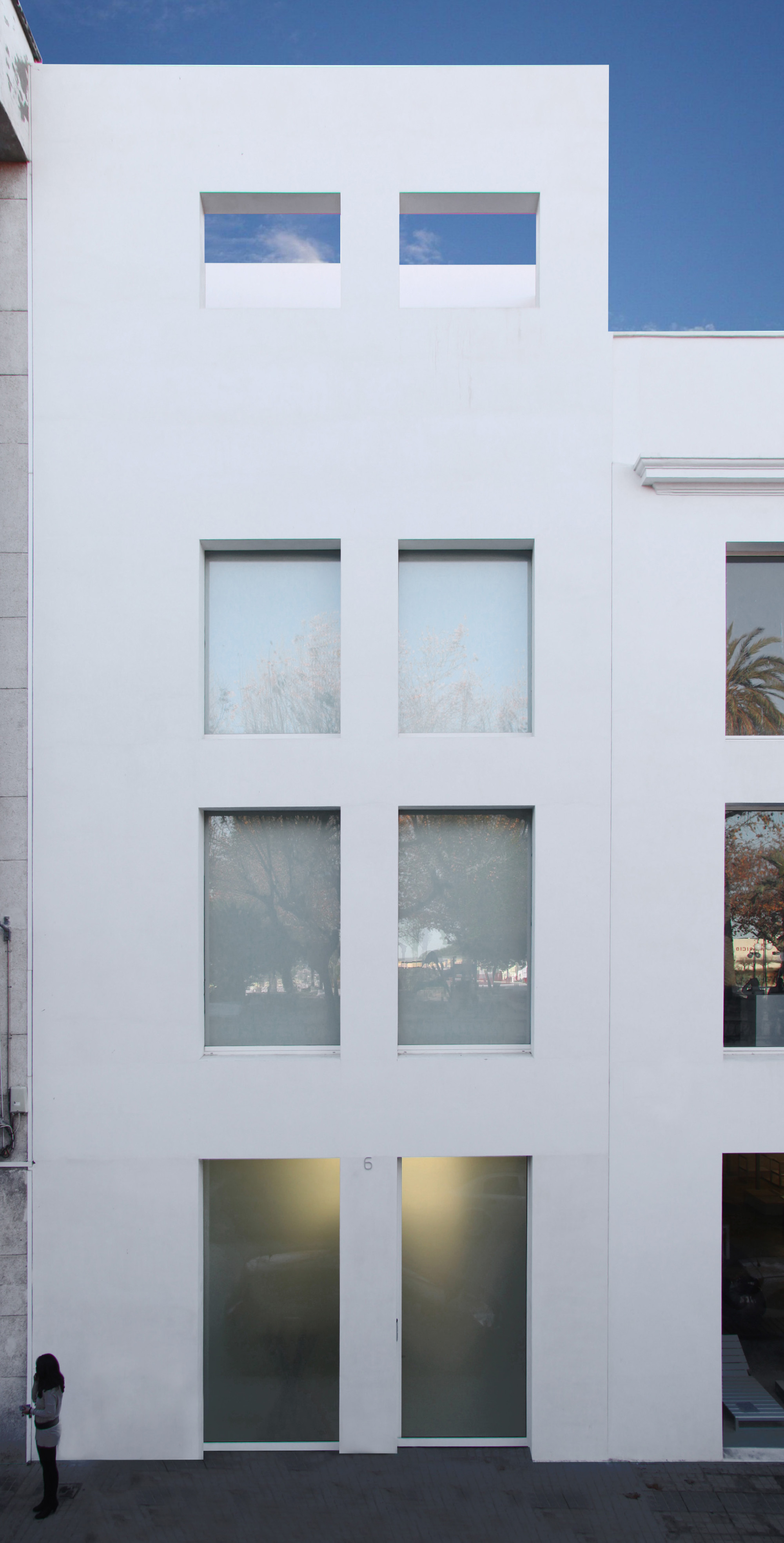 طبقهی همکف با فضاهای اجتماعی متعددی به یک محوطهی عمودی منتهی میشود که مزین به چند تابلوی دیواری است که تاریخچهی شرکت را توصیف میکنند. تمام مصالح ساختمان بهدقت گزینششدهاند تا انسجام و ارتباط بین پروژه و شرکت گاندیا بلاسکو[۱] را تضمین کنند. چهرهی ساده و ماتِ فضا، تصویری که این شرکت از طریق محصولاتش در ذهنها ایجاد کرده را کامل میکند.