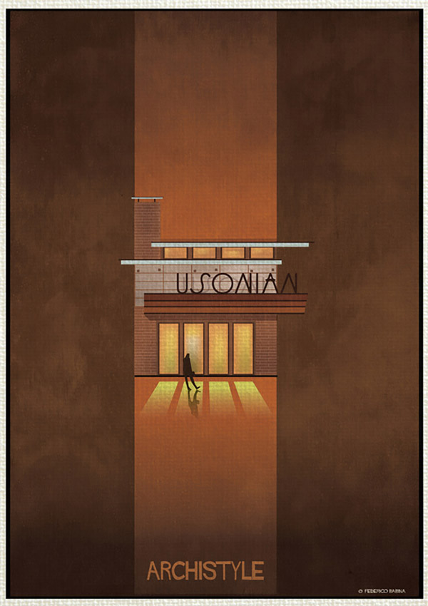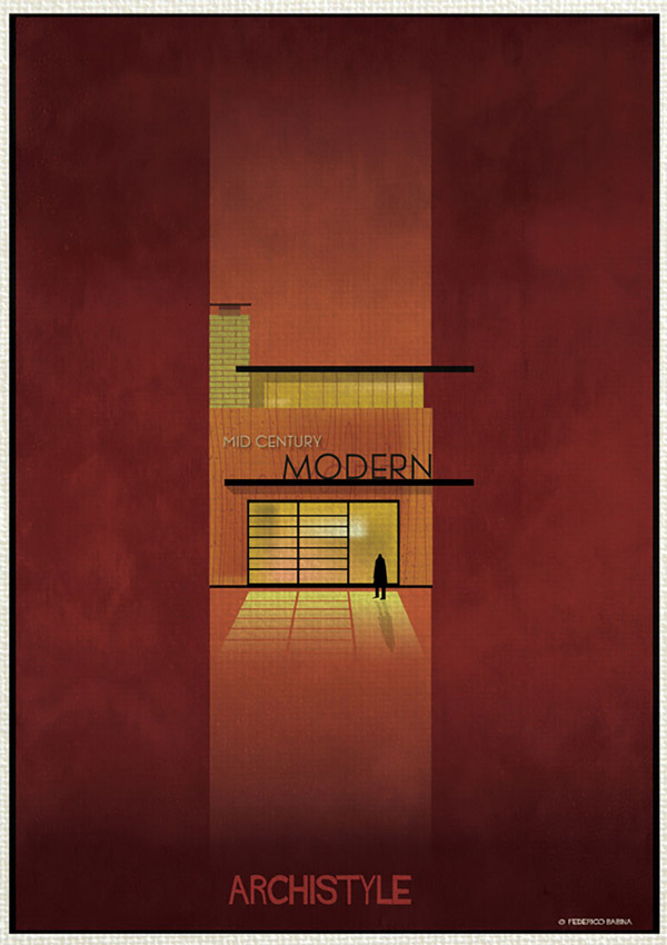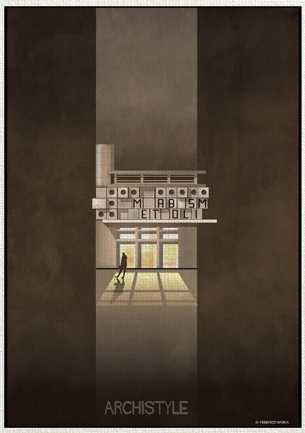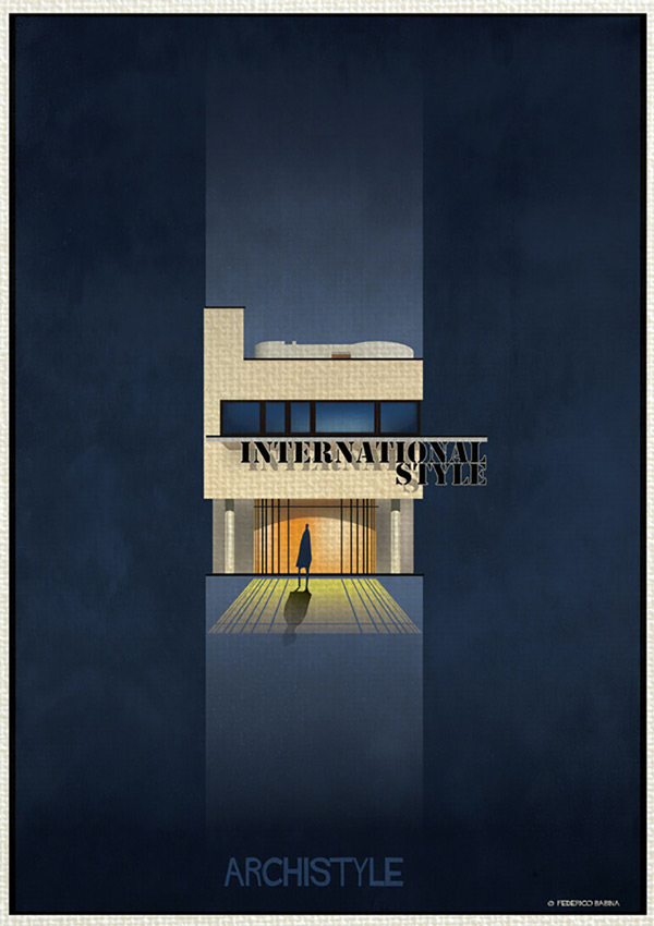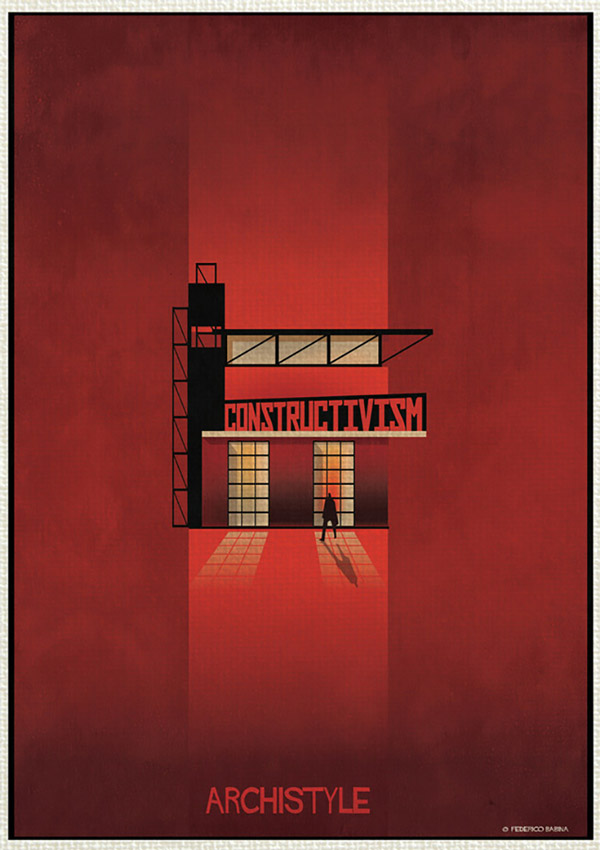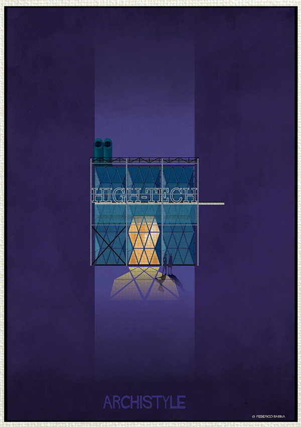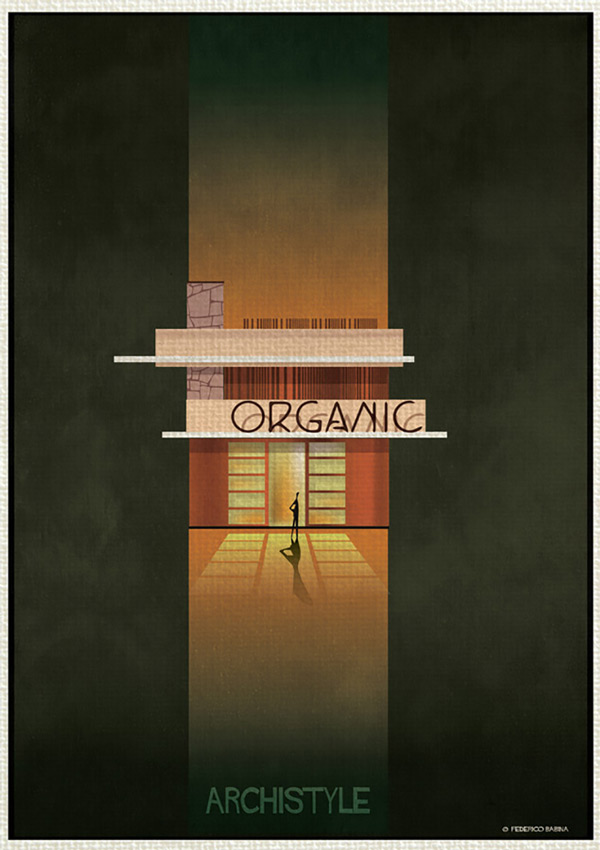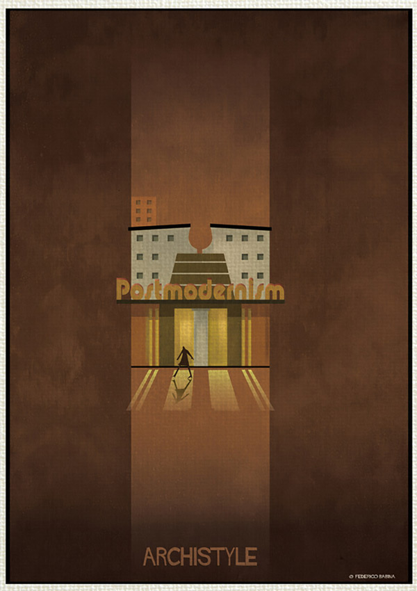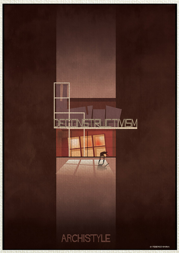 فدریکو بابینا در مجموعه «آرکی استایل» این بار جنبش های بزرگ معماری را با بیان گرافیکی بسیار ساده به تصویر درآورده است. این هنرمند ایتالیایی ۱۶سبک ساخت و ساز در قرن گذشته که باعث دگرگونی در معماری شده اند را انتخاب نموده است؛ از دیکانستراکتیویسم تا آرت دکو.